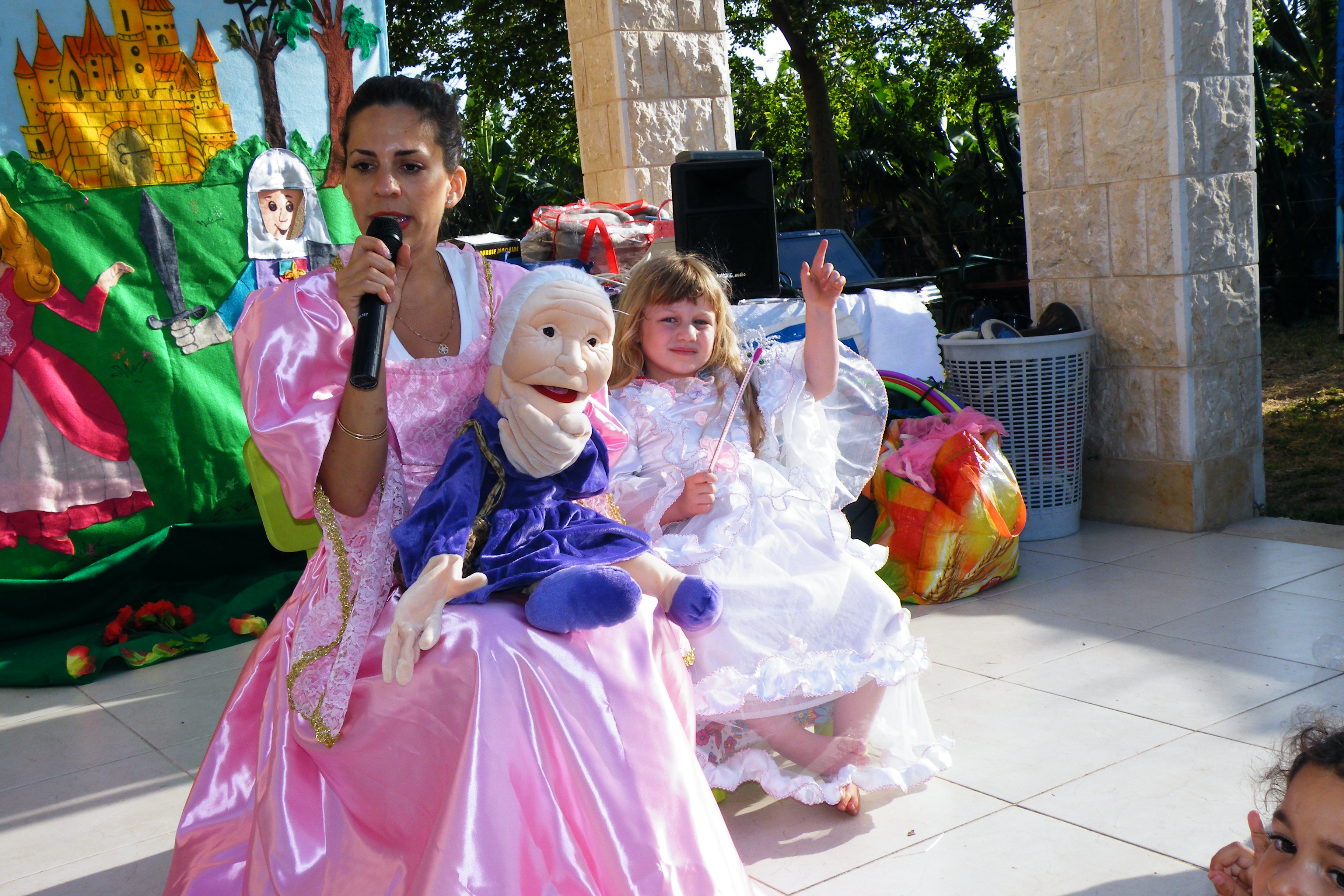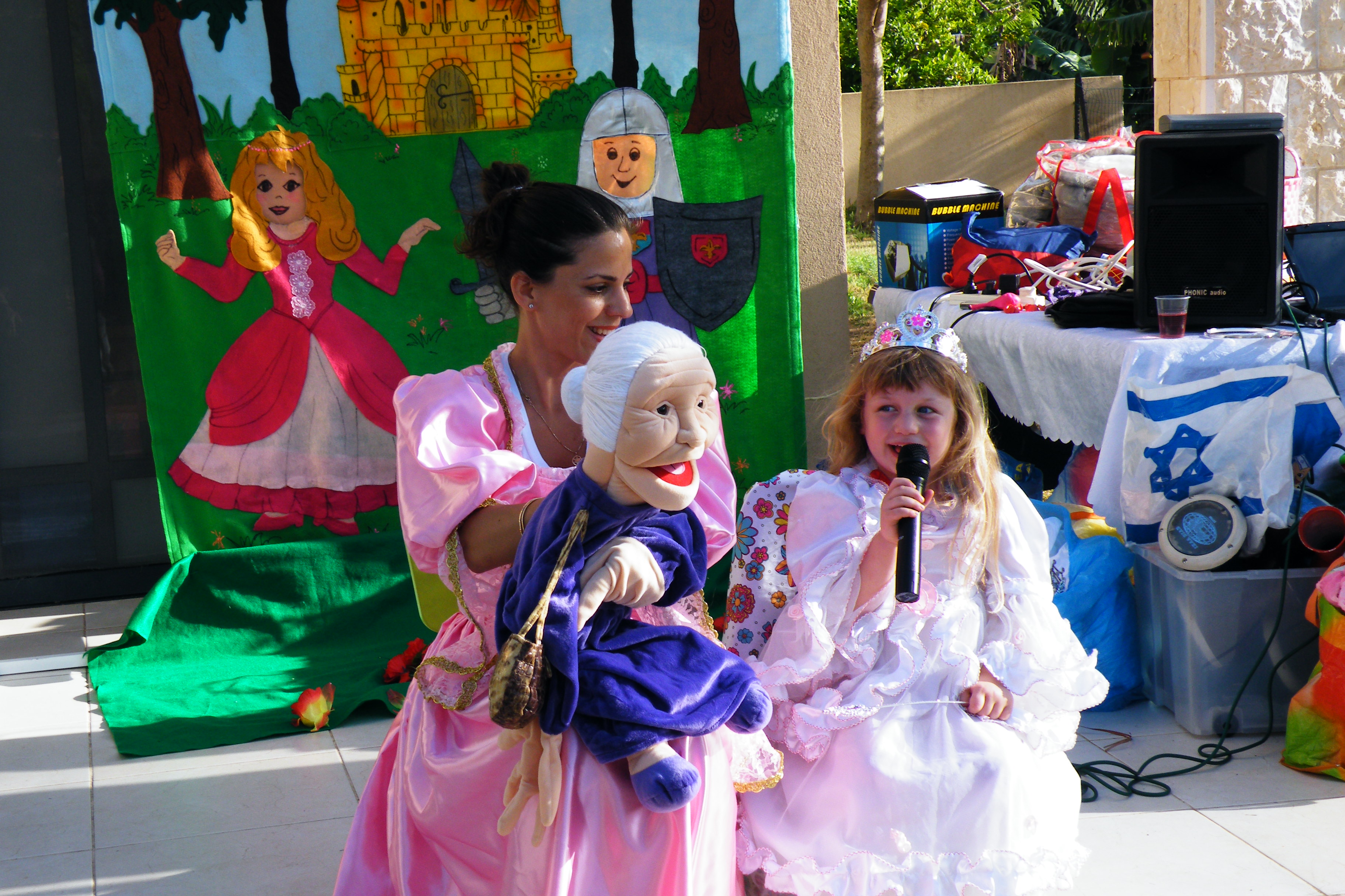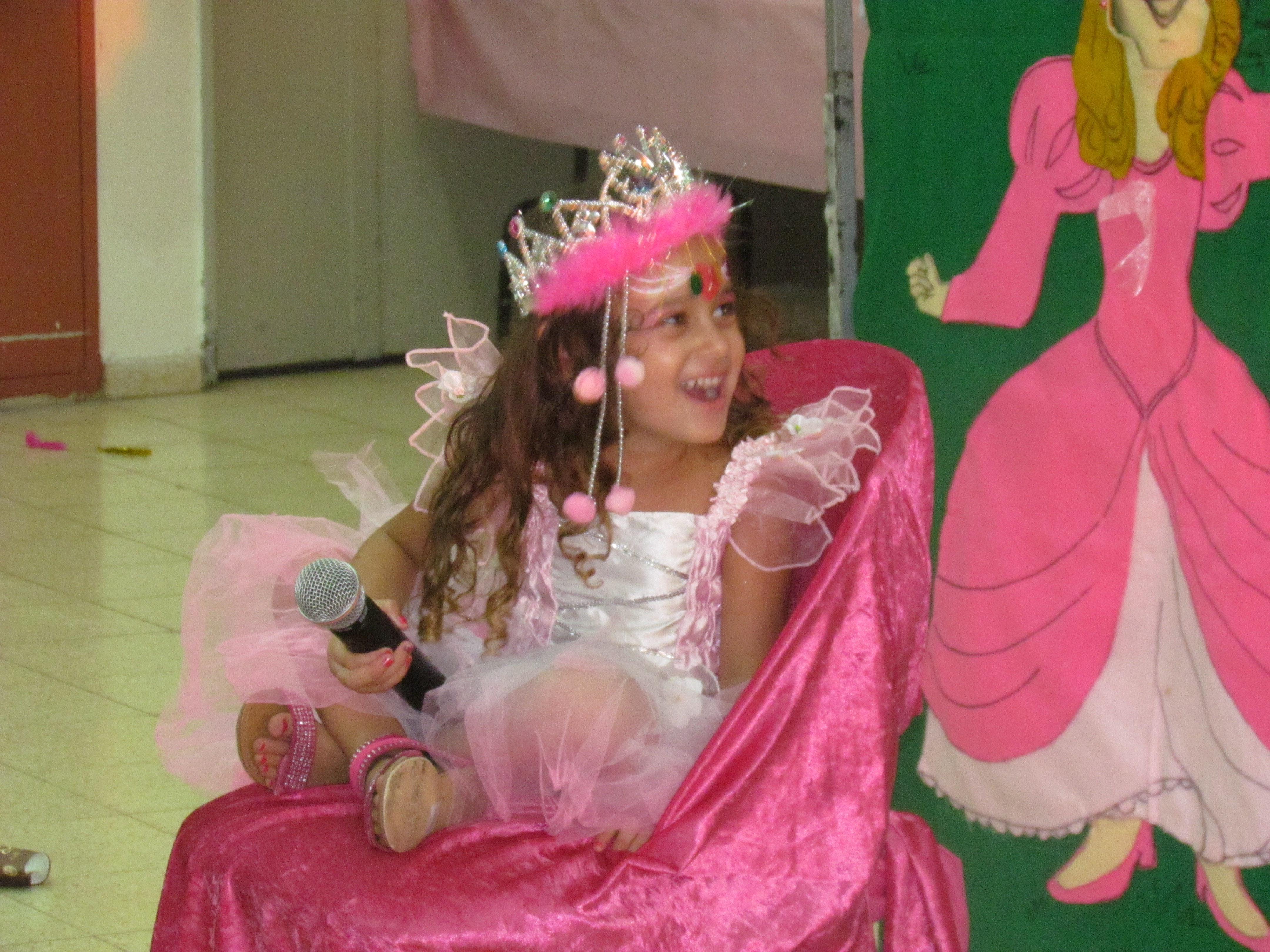 כל החברים יקבלו גלימות חצאיות וכתרים וביחד כולנו נחגוג בהפעלה קצבית מלווה באביזרים ובובות  מדברות שירים וריקודים דרבוקות תפאורה ססגונית ומקורית , ונסיים עם טקס עוגה מרגש וחלוקת מתנה לכל ילד וילדה